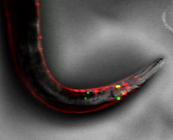 生物 GFP、RFP 标记线虫中的神经元(Image courtesy of Julie C. Canman, Ph.D., Columbia University)