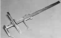 三脚平行规由固定脚、活动脚、中间竖尺和尺框构成。