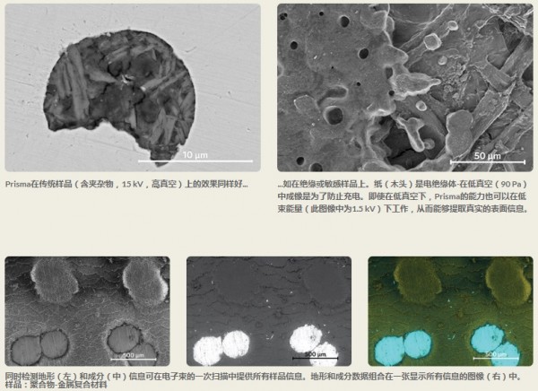 多用户实验室需要显微镜才能在短时间内产生带有相关数据的高质量图像。Prisma E通过基于四枪组件的强大成像系统满足了这一需求,该系统在各种束能量和真空条件下都能提供出色的结果。在所有这些条件下,地形图和成分图都提供了必要的样本信息。通过同时采集,该信息可随时用于进一步的解释和分析。