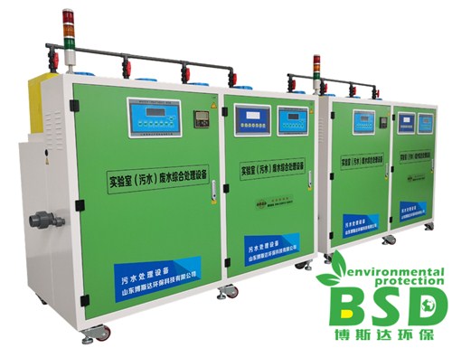 实验室废水处理设备由废水分类收集单元、废水调节单元、水深度处理单元、沉降分离单元、物理处理单元、生物处理单元、中和、废水综合净化单元等构成,通过化学预处理、化学深度处理、沉淀、多程消毒灭菌、过滤沉淀分离、紫外光波催化处理工艺对实验室内产生的废水进行综合处理。