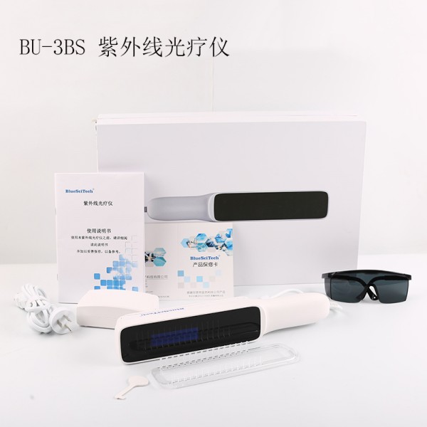 紫外线光疗仪 BU-3BS BlueSciTech1、采用荷兰飞利浦(Philips)公司生产的9W特种 紫外线灯管,作为治疗光源,具有稳定性高、寿命长的特点2、进口镜面反光板,提高辐照强度,提升治疗效果3、OLED一体大屏显示,屏幕亮度可调