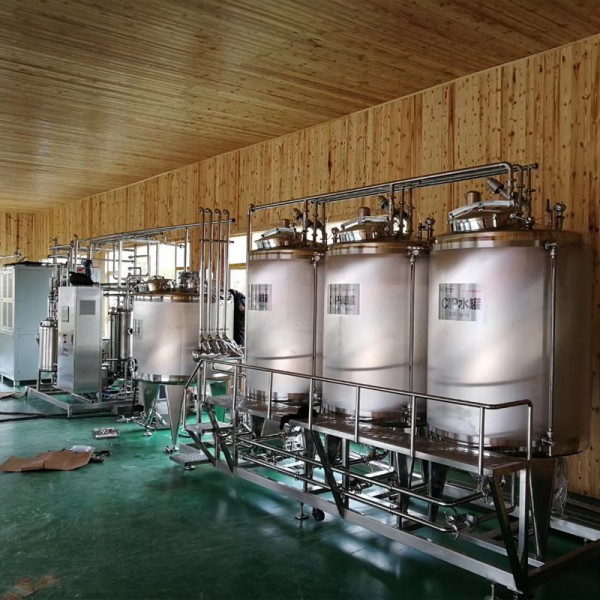 连体式CIP结构:主要由酸液罐、碱液罐、清水罐、机架、清洗液送出分配器及离心泵等组成。