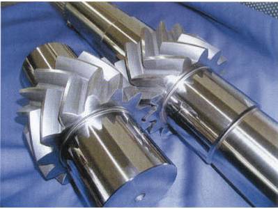 WITTE泵设计——“人字型齿”斜齿轮大幅度降低了平行外啮合齿轮在高压下的脉动。而对于挤压、聚合、合成、化工等工艺中,要求泵的出口压力波动非常小时,如在高质量的管材、薄膜、片材挤塑机上,使用“人字型齿”能够更彻底的消除压力和流量的波动。与塑料及聚合物工艺的传统设计相比,在同等排量下,“人字型齿”允许使用加粗的轴颈。此结构可以降低进出压力对轴承的负载,同时压差范围更大,可以达到350Bar,泵进出口两端在高压下工作时,轴承温升很低。人字型齿轮的另一特点是对介质的剪切力较小。
