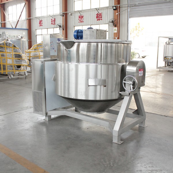 材质由SUS304不锈钢制造,带搅拌装置锅体:顶部中心搅拌,减速机输出轴与搅拌桨轴采用活套连接,方便拆装与清洗。支脚形式:立式锅体:三棱锥形式、圆管式可倾式锅体:槽形支架式。设备配置:表盘指针式温度计、蒸汽进口、出料口等(立式结构)。可倾式夹层锅体大可倾转90°,倾转方式为手动式翻转。注:夹套工作压力、电机功率、加热功率、搅拌浆结构等可根据客户特殊要求定做。