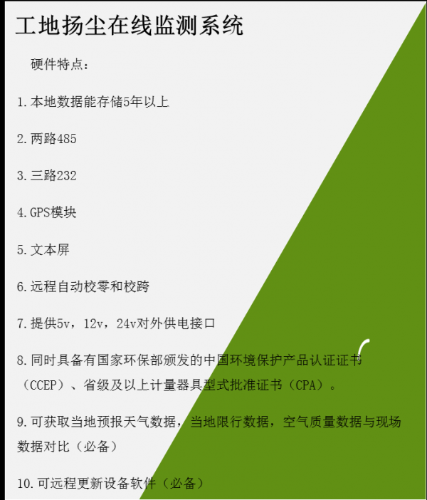 广州、深圳扬尘噪音监测系统大批量安装技术参数: