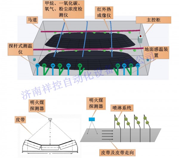 明火煤温度监测系统采用红外探测器来探测输煤皮带上的煤温度,系统可以不停机灭火工作,单独运行,就地操作。