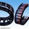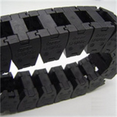 TSUBAKI拖链适合于使用在往复运动的场合,能够对内置的电缆、油管、气管、水管等起到牵引和保护作用。TSUBAKI拖链每节都能打开,便于安装和维修,运动时噪音低、耐磨、可高速运动。 TSUBAKI拖链已被广泛应用于数控机床、电子设备、石材机械、玻璃机械、门窗机械、注塑机、机械手、起重运输设备、自动化仓库等。TSUBAKI拖链外形似坦克链,由众多单元链节组成,链节之间转动自如。相同系列的拖链内高、外高、节距相同,拖链内高、弯曲半径R可有不同的选择。TSUBAKI单元链节由左右链板和上下盖板组成,拖链每节都能打开,装拆方便,不必穿线,打开盖板后即可把电缆、油管、气管等放入拖链内。另可提供分隔片,将链内空间按需要分隔开。TSUBAKI采用增强尼龙材料,具有抗拉负荷、高弹性、耐磨性、阻燃并有一定的耐酸、碱能力。高低温时性能稳定,可以使用在室外。速度可达5米/秒,在正常架空使用情况下,可达千万往复运动次数。