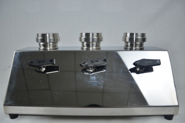 二、1. 拧松底部圆螺母,抬起金属固定架,取出玻璃桶,在多孔垫板下先放置一橡胶垫圈,在垫板上放置一聚四氟乙烯(PTFE)滤膜垫圈,然后放上微孔滤膜 (φ50mm,0.45μ),再放置一四氟乙烯(PTFE)滤膜垫圈,安装玻璃桶,在玻璃桶顶部再安装一片密封橡胶片,套上金属固定架,拧紧底部螺母,盖上顶部可启开的盖即成密闭式结构,如不需要全密闭结构,可不安装顶部橡胶片;