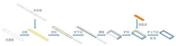围框(无底)制盒机实现了皮壳成型、贴卡及压痕、围框成型和丝印组装等全套工序动作在一条生产线上自动完成,其制盒速率可达到20~30pcs/min。