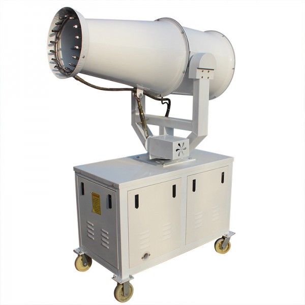 除尘雾炮机是一款实用经济实惠的喷雾机,整机结构紧凑,自带水罐,移动方便。出厂时全部调试完毕,购买后无需复杂安装,加水接电即可使用,简单方便。上部是风机风筒和喷雾喷头,下部是高压泵、水箱和控制系统,合理放置在钢材焊接的主体框架内,*下部是轮胎。雾炮工作时高压泵将水加压通过风筒前部的喷雾喷头雾化,风机风筒出风将水雾扩散到需要扬尘控制的区域,使水雾与粉尘颗粒充分接触、碰撞、结合变成大颗粒团聚从而自然沉降,达到去除扬尘、洁净空气稀释有害气体、降温等多重功效。