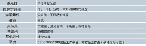 LQX-8全息实验系统基本型主要配置参数