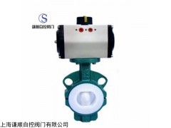 气动衬氟对夹蝶阀是用阀杆一起转动的蝶板作启闭件,用以实现阀门的开启,关闭与调节。气动衬氟蝶阀是在过流部件、阀体、蝶板、阀杆上采用衬里技术衬里较厚的高分子材料,防腐蚀性能优良,可适用于任何浓度的酸、碱、盐及氧化剂、还原剂、有机溶剂等介质,是化工、石油、医药、食品、钢铁冶炼、造纸、水电等系统的气体、液体、半流体的管路和容器上作截流和调节设备使用的理想产品,并可取代闸阀、截止阀和其它类型的切断、调节阀门。