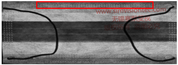 系统采用透射的打光方式(对于不满足透射条件的生产线,则采用正反面表面反射的打光方式),即将光源架设在生产线的下方,工业CCD相机架设在产线的上方。当产线开始正常生产时,相机实时高速在线扫描,将采集到的口罩表面的图片发送至中央处理单元,经过赛默斐视SimVision图像分析软件进行高速处理,通过灰阶对比及膜版匹配的方式,由于瑕疵口罩的表面图像与正常的口罩表面图像存在明显的灰阶差异,从而使得系统能够发现瑕疵。当系统检测到瑕疵缺陷时,自动声光报警,并显示瑕疵口罩的表面图像,同时给产线后道剔废系统发送剔除信号,从而代替人工实现对口罩的7*24小时实时在线监测,有效的保证了产品质量。