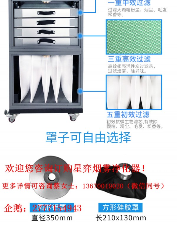 电子电器烙铁焊锡、锡炉浸锡、SMT波风炉、回流炉;激光焊接、切割、打印、雕刻、喷码;美容、艾灸、酒店、KTV包房、棋牌室、医院手术室、化学实验室;电焊、氩焊、等离子切割、金属抛光车削;LED制造、汽车制造、家具生产、各种首饰品制造、喷涂、电镀,印刷等领域,为用户改善生产环境、提高了生产效率,并降低了生产成本。