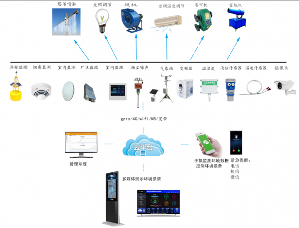 远距离森林防火在线监控预警系统架构基于物联网理念,并结合了“多端显示”的思想,监测硬件设备作为前端,24小时不停电监测现场环境数据,并通过wifi,网口,gprs/4G /NB-iot/zigBee等数据链路往云平台上传数据;云平台24小时全天侯实时,接收、保存,下载、图表显示、智能分析、智能告警提醒(支持5路,、短信、),用户可以可以通过公众号端,电脑端,大液晶电视屏都可以直观查看实时数据,历史数据,数据变化趋势,规律等。