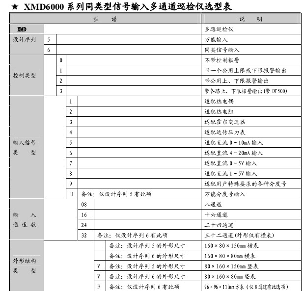 ※ 输入信号(XMD6000为同类型多种信号输入)