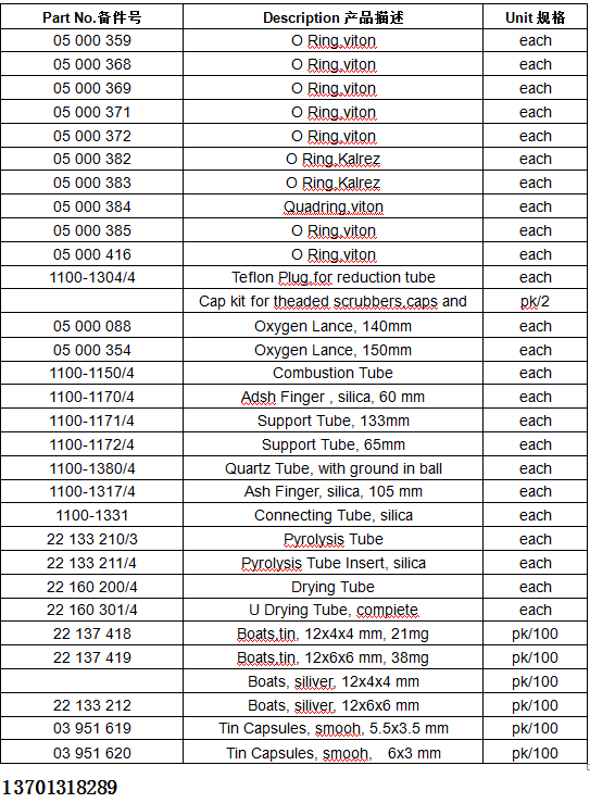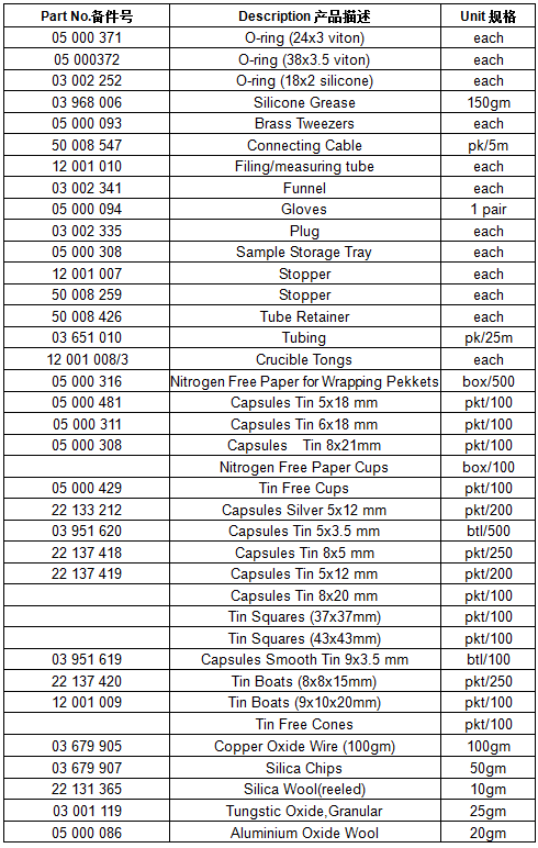ELEMENTAR公司分析仪用备件和消耗品,原装德国进口。现大规模促销,