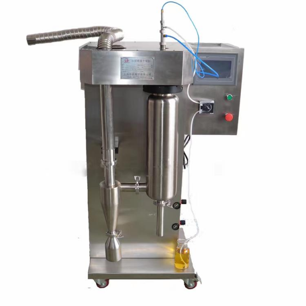 有机溶剂喷雾干燥机主要适用于高校、研究所和食品医药化工企业实验室生产微量颗粒粉末,对所有溶液如乳浊液、悬浮液具有广谱适用性, 适用于对热敏感性物的干燥如生物制品、生物农药、酶制剂等,因所喷出的物料只是在喷成雾状大小颗粒时才受到高温,故只是瞬间受热,能保持这些活性材料在干燥后仍维持其活性成份不受破坏。