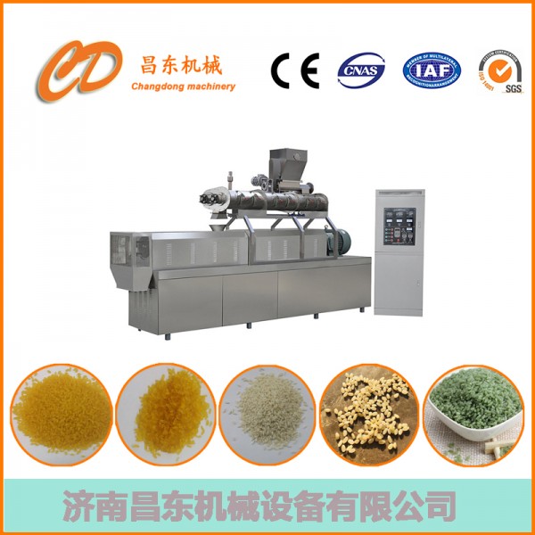 3、挤压机:有专门控制柜,在高压环境下,挤压出大米颗粒,调节工艺与更换模具可生产不同形状的米粒。