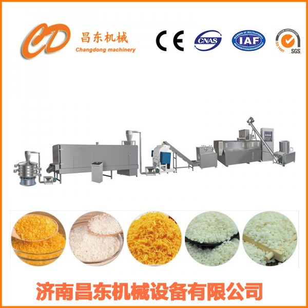 针状圆片状面包糠生产设备是基于的双螺杆挤压膨化技术设计而成的,其质量与运行均达到水平。生产线改变了传统面包糠的生产工艺。生产流程为拌料、挤压、切断、破碎、干燥全部自动化完成。面包糠广泛使用于食品添加辅料,用于油炸食品表面涂裹,如:炸鸡肉、鱼肉、海产品(虾)、洋葱圈等。其味香酥脆、可口鲜美、营养丰富。改变工艺可生产针状面包屑,面包糠,雪花粉等产品。