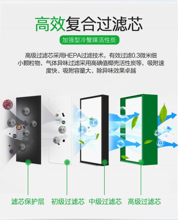 ◆采用三重过滤设计。 逐层过滤,确保有害烟尘被滤除得更彻底。净化率可达99.97%。