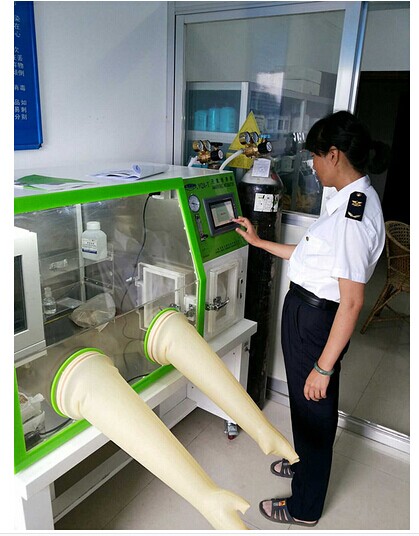 6、操作室均由不锈钢板制成,其前窗采用厚透明耐冲击特种玻璃板制成,操作使用专用手套可靠舒适、灵活,使用方便。