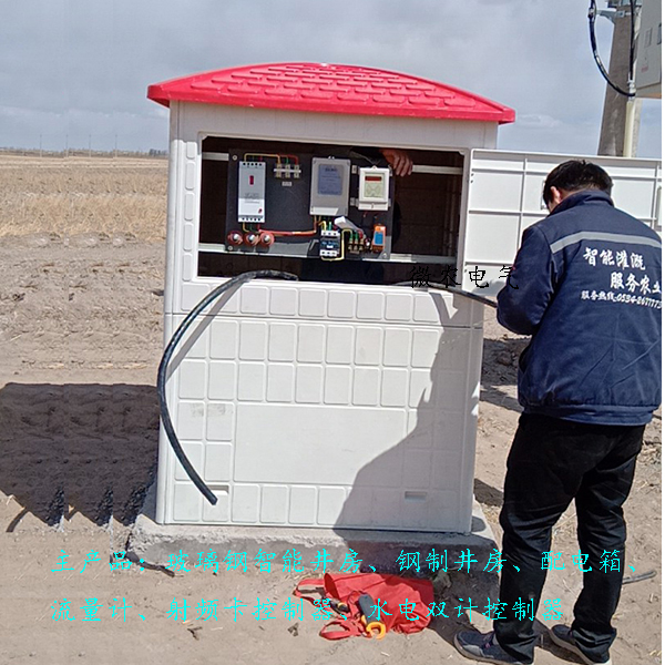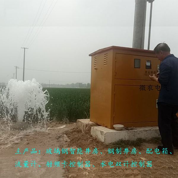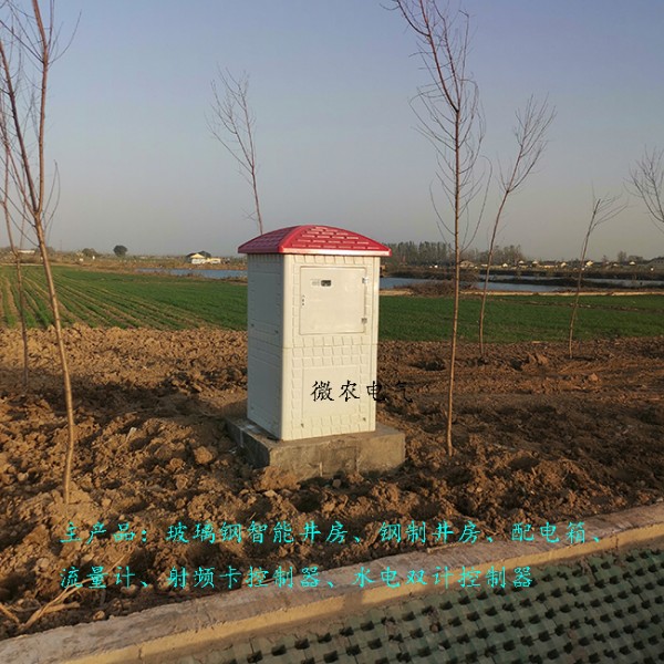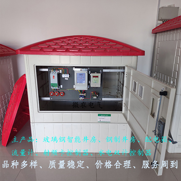 射频卡控制器的保护装置,可选择钢制井房,玻璃钢井房,配电箱也可以,玻璃钢井房也称玻璃钢井堡,使由采用SMC(片材)高强度材料模压成型的模板组装而成,主要包括井房防雨帽,前门板以及通用板块,其中前门板上安有防盗锁,有视窗可观察电表和射频卡控制器视窗,有明显的刷卡区域,板块与板块之间以及玻璃钢箱体与防雨帽之间都是使用螺栓连接、组装,安装非常的便捷,防晒防淋,有效的保护内部的射频卡控制器。