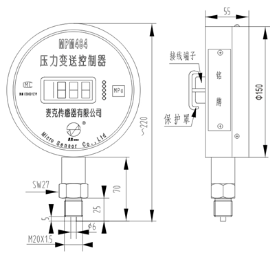 •Φ150mm标准压力表外形;