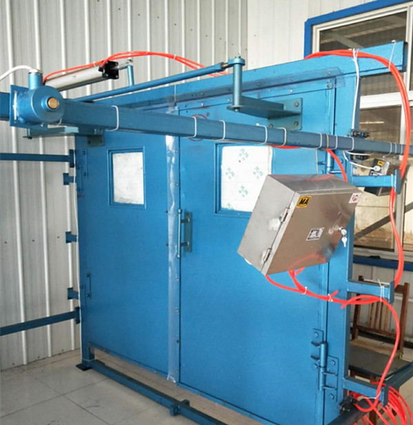 风门采用钢制焊接,门扇采用钢板与联杆连接,安装控制系统可实现风门自动开启、闭合。自动无压风门采用力平衡原理,两道双扇风门,每道风门为双扇钢制门框,异向同步开闭,运用联杆平衡机构转化为一种内力,并得到平衡,保证了风门打开时省力、方便、灵活。开启压力小,开启力与巷道内风压的大小无关;双向隔风,不需再设反向风门;人车过后,风门能自动关闭;双向密封,漏风量小;关闭平稳,安全可靠;防腐、防潮、防燃、强度大、不变形;两道门之间可实现闭锁;系统简单,易维护。
