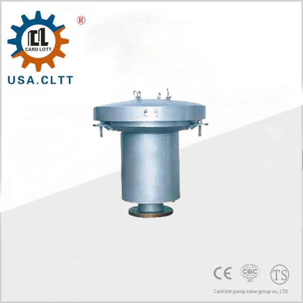 进口液压安全阀是(活瓣式)呼吸阀的安全备用设备,它的吸气和呼气的动作压力略高于(活瓣式)呼吸阀,在呼吸阀一旦失灵或在冬季其活瓣冻结时,液封即被破坏,从而保护油罐免遭破坏是装设在油罐顶上。当机械呼吸阀发生故障时,液压安全阀就能代替机械呼吸阀进行排气或放气。