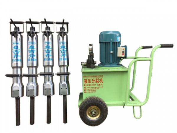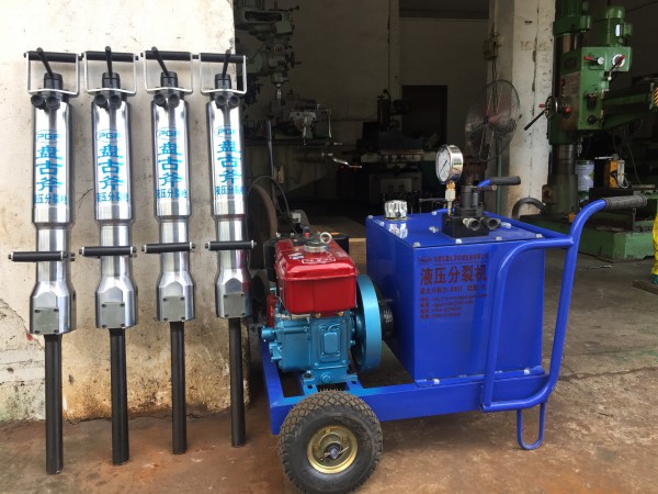 液压劈裂器又称液压破石机,该产品由液压泵站和劈裂器两部分组成。其泵站的动力源有电动机(380V三相交流电)、汽油机、柴油机和发电机组等几种不同的驱动型式,可用于不同的工况场合。每个泵站可驱动一个或多个劈裂器。