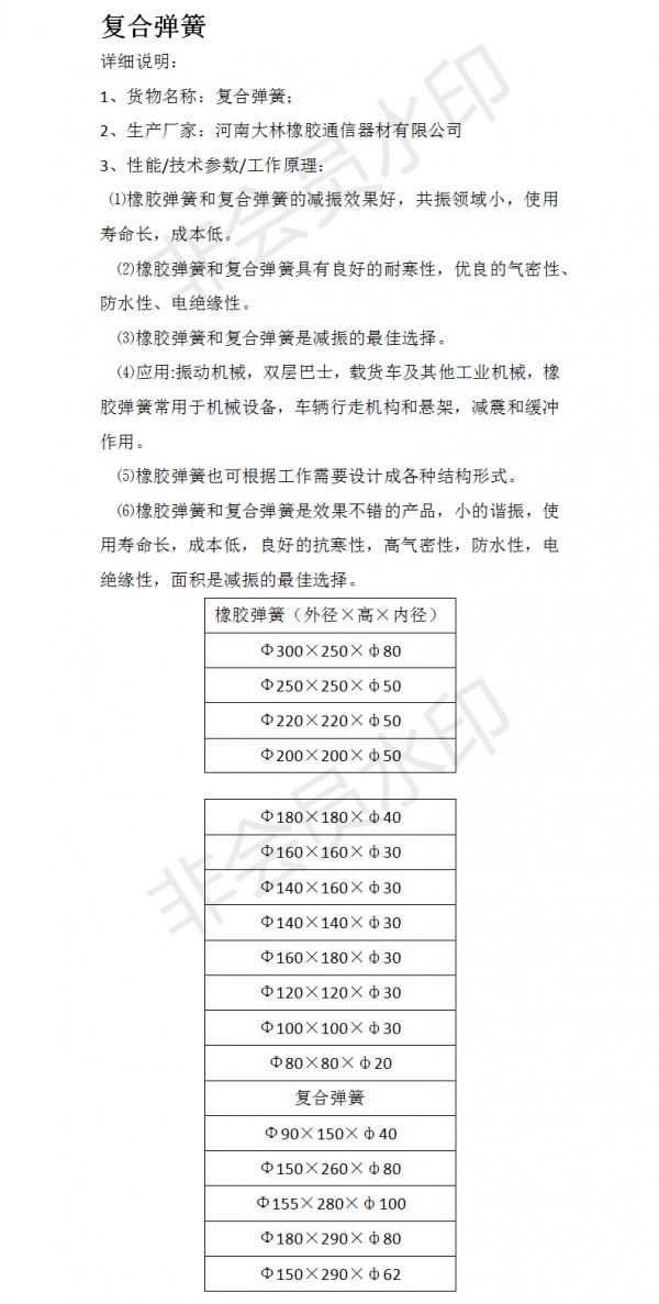 1、货物名称:复合弹簧;