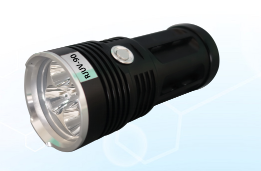 选用高强度进口LED紫外线灯珠做紫外线光源,具有紫外线强度大、寿命长、功耗低、即开即亮等优点。外壳采用航空铝合金,防水抗压。小巧轻便,易于携带,阳氧化处理,防水防腐防滑耐磨,散热效果好,既适合实验室又适合工厂环境使用。供电电源为4节高能量锂电池,一次充电可连续工作5小时。