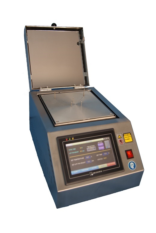 HP100-SE烤胶温度300℃(更高温度可选),可实现控温在±0.5℃以内,温度分辨率在0.1℃,表面温度均匀性小于1%的控温操作。HP100-SE且带有接近模式烤胶的顶升功能,方便计时,方便上下片拿取,顶升功能能够进行5步编程,可存贮100组顶升烤胶程序。