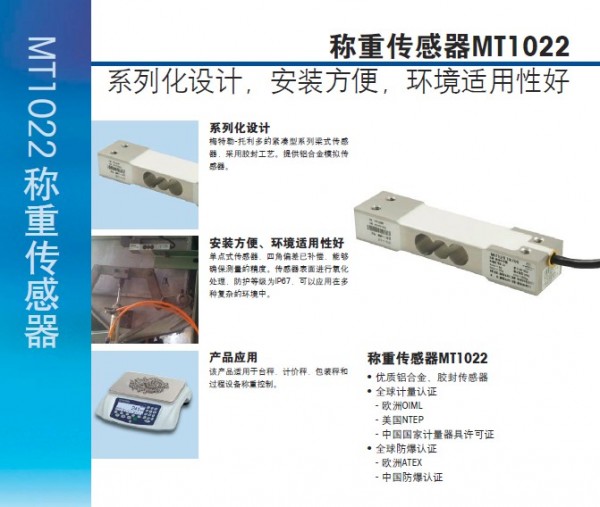 梅特勒托利多MT1022传感器3kg~30kg以下信息长期有效!MT系列称重传感器铝合金单点式传感器。四角偏差已补偿。防护等级IP67。适用于台秤,包装秤和过程称重设备等。