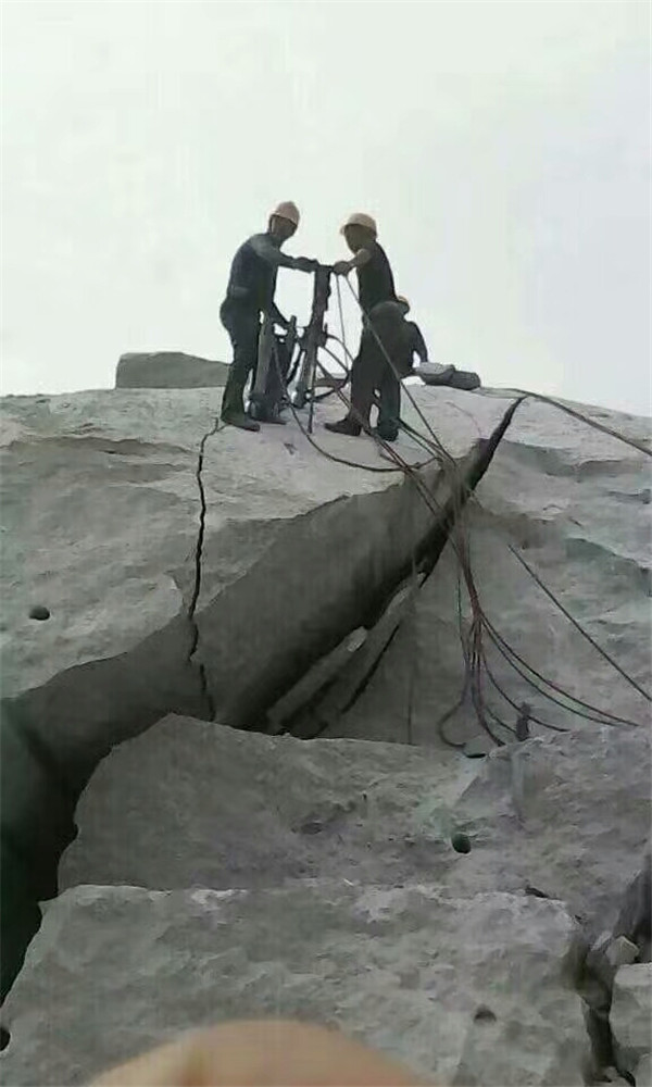 2、 液压劈裂机以液压油为驱动力,并巧妙地应用斜契原理,使劈裂器头破拆力达到几百吨,甚至上千吨,这样就可以在几秒钟时间内把上百吨的巨石轻而易举地开裂开来,从而使坚硬而巨大的岩石从山体中分离。