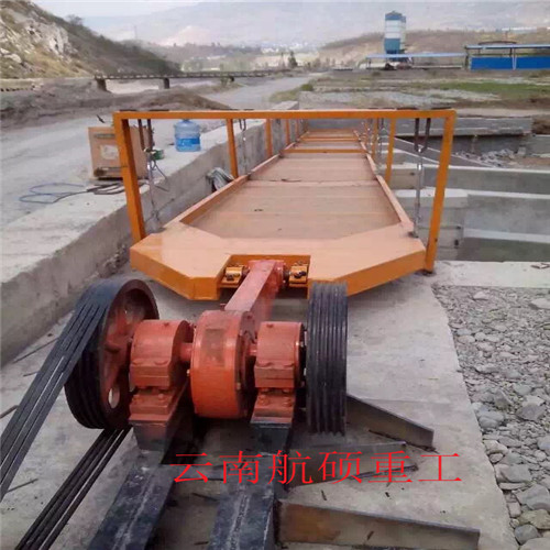 平面往复筛也叫平面运动筛,该机体是在一个平面内摆动或振动。按其平面运动轨迹又分为直线运动、圆周运动、椭圆运动和复杂运动。平面往复筛可有效的分离狗头石、公分石、瓜米石、浇灌砂及粉墙沙等四到五种成品物料。本系列电机带动偏心轴旋转,通过拉杆将偏心轴的旋转运动变为筛体的往复直线运动,再利用物料的自重作用及筛体的安装倾角,使物料由细到粗依次从筛网孔中卸出,从而达到筛分物料的目的。 结构简单、维护方便、产量高、筛分效果好,电机及传动系统安装在同一平台上,结构性好、调整方便、安装牢固等特点。