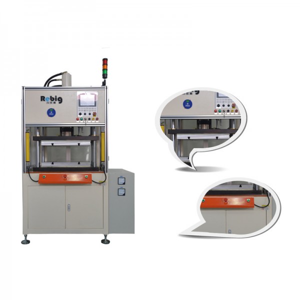 1.热压机采用四柱三板式结构,活动板与工作面平行精度高,四个导套使下压垂直精度高。