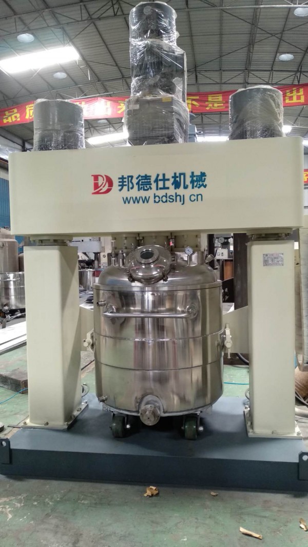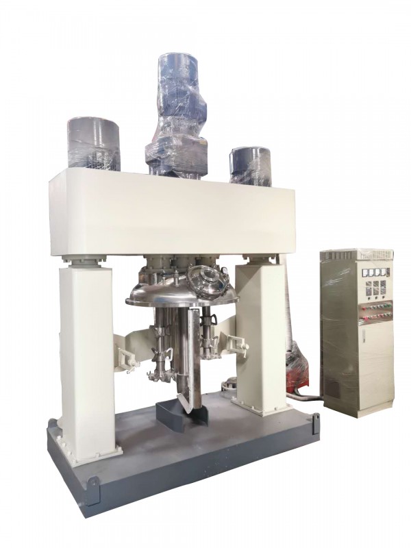 强力分散机是一款多功能型高速分散设备 ,整机配置了2台高速电机,1台低速电机,转速可达3000转每分钟。强力分散机适用于硅酮胶、电子密封胶、RTV胶、环氧胶、聚氨酯胶、化妆品、锂电池等物料搅拌;分散机对物料有强劲的分散效果,可以让固-液-粉-膏等形态的物料在高速运动下充分混合,强力分散机能满足化学工业所需的均质搅拌、聚合反应、硫化、磺化分散、溶解、调质等工艺需求,搅拌工艺以及设备均可按要求定制。