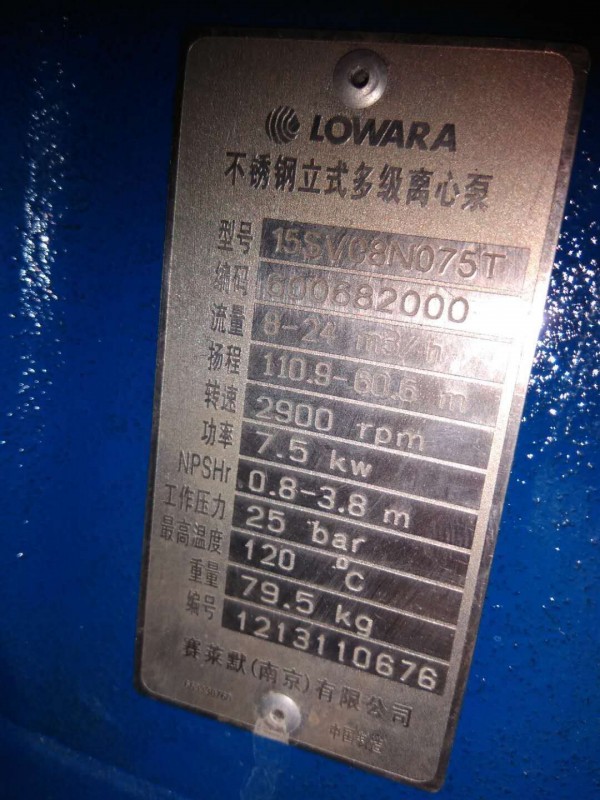 流量:160 m³/h 南京赛莱默立式多级泵22SV02F022T