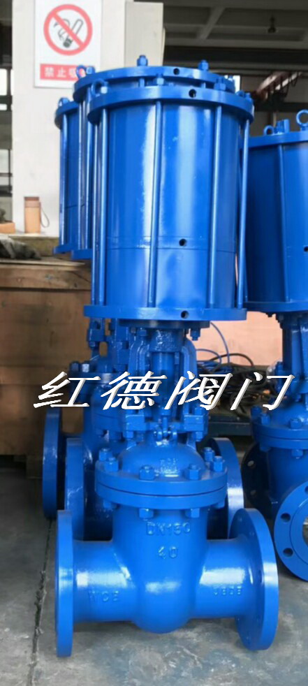 Z641H气动闸阀的双层气缸和缓冲机构的工作原理: