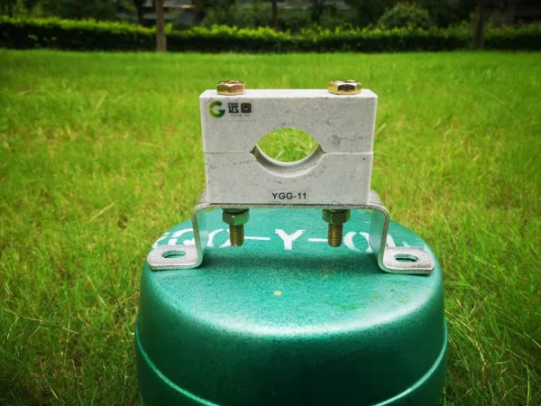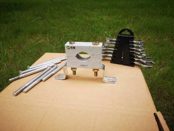 2. 高压电缆固定夹具型号:YGG-12,外形尺寸:140×80×35mm,螺杆中心距:100mm,适用电缆外径:43-59mm;