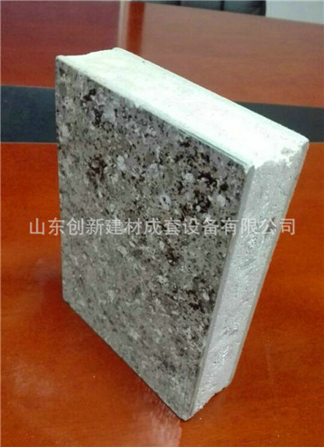 山东创新外墙保温板生产线采用辊压式制板工艺,产品以聚苯乙烯颗粒、无机胶凝材料、玻璃纤维布、改性剂、功能性添加剂为原料,一次成型生产各种规格的防火外墙保温板产品,设备自动化程度高,整机采用自动化控制,实现了自动上模板、自动脱涂模剂、自动铺布、自动上料、自动摊平、自动分切、自动复压、自动清洗、自动接板、自动卸垛、自动脱模、流水线分切、自动清洗模板、自动码垛包装等功能,设备操作方便,运行平稳,生产效率高、劳动强度低,可根据客户要求生产不同规格、不同材质的各种保温节能产品,产品表面光滑、平整、密实度高,保温、防火材料分布均匀,防火级别达到A1级,是目前市场上EPS、水泥发泡、聚氨酯发泡、挤塑板等保温板的理想替代产品。