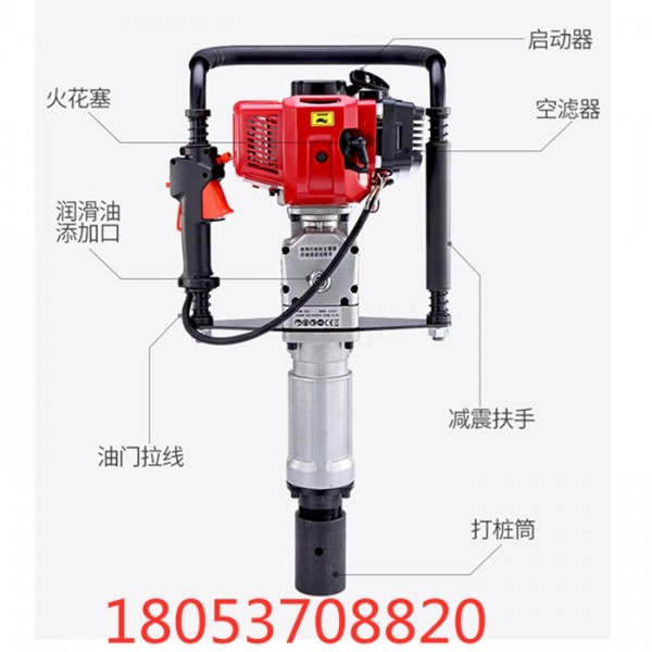 手持式内燃防汛小型打桩机便携式二冲程内燃小型打桩机有强劲的动力系统,从而增加工作效率,适用于建筑打桩机 地基打桩机、破冰打洞等这些工作均不需要动力站或电缆。手持式内燃防汛小型打桩机针对打桩作业设计。