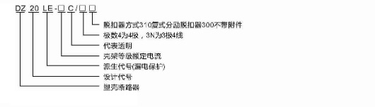 DZ20LE漏电断路器系电流动作型电子式漏电断路器,主要由零序电流互感器、电子组件板、漏电脱扣器、试验装置及带有过载和短路保护的断路器组成,全部零件安装在一个塑料外壳中,当被保护线路中有漏电和人身触电时,只要额定漏电动作电流达到动作电流值,零序电流互感器的二次绕组就输出一个信号,触发可控硅经电子线路板放大,通过漏电脱扣器动作切断电源,从而起到漏电和触电保护作用。