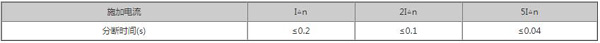 当周围空气温度为+40℃时,配电用漏电断路器在过电流脱扣器各同时通电时,反时限断开动作特性