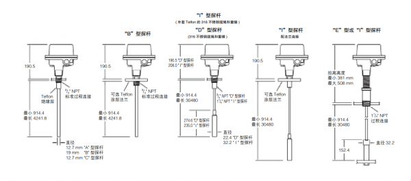 刚性的、挠性的、带重锤或带紧固装置的,可选材质有Teflon,PVC,和316不锈钢