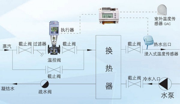 2、控制器自动根据二次侧出水温度,调整一次侧阀门内水流量,达到舒适、节能的效果。换热器出水温度根据室外温度进行补偿变化,用户在使用过程中感觉舒适,避免了室外温度越高室内温度越高,室外温度越低室内温度越低的怪圈。用户在使用舒适的前提下,可节约运行费用,降低运营成本,取得可观的经济效益。