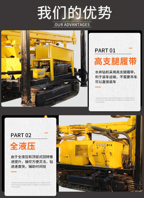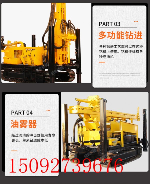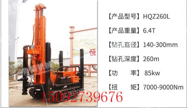 HQZ260L钻机是一种、多功能的钻凿孔设备,它主要适用于钻凿水井、农业灌溉井、地热空调孔及其他 用途的井孔,尤其适用于山区和岩石地层的取水工程。效率比传统的回转式钻机高十几倍,为用户创造的经济效益 为可观。特别是解决了土层空气潜孔锤钻进困难,坚硬岩石层、砾石、卵石层的回转钻机的施工难题,能够在各种