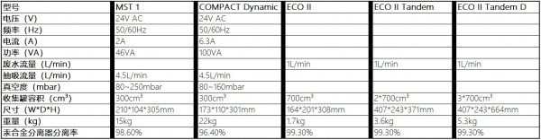 麦塔希的汞合金分离器型号可覆盖从单台牙椅到上百台牙椅的中央抽吸系统,可满足所有牙科负压系统的需求。MSI和COMPACT Dynamic汞合金分离器是专门为安装在牙椅内部设计的,模块化设计,结构紧凑,可选多种安装配件。ECO II 和 ECO II Tandem 汞合金分离器是为牙科中央抽吸系统设计的,具有高可靠性,高分离率99.3%,安装快速简单,免维护(无需插电,每年或者固体集满更换收集罐)等特点。